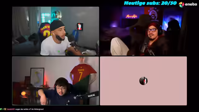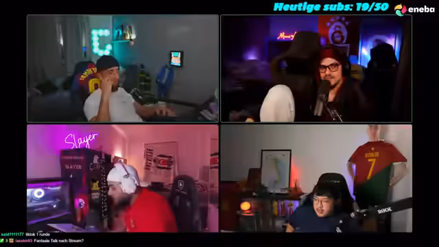 05:08:35Auf Bitten einer 'Chefin' wird der Streamer aufgefordert, dem anderen auf Instagram zu folgen, jedoch fehlt der Zugriff auf das eigene Konto. Gleichzeitig wird der Vorschlag eines WhatsApp-Call mit dem anderen getätigt. Der Streamer zeigt sich jedoch skeptisch und will auf keinen Fall 'heile Sachen' machen. Ein Discord-Mod sorgt für einige Verwirrung im Chat, da der Streamer nach bestimmten Personen sucht. Schließlich wird ein Call mit Freunden eingeleitet und der Stream-Titel entsprechend geändert.