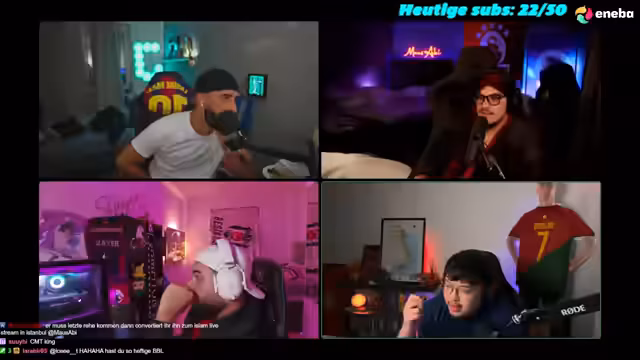 05:42:56Ein spontaner, tiefgründiger Dialog über den Islam beginnt. Der Streamer, der sich selbst als nicht-religiös bezeichnet, zeigt großes Interesse an der Religion und lädt ein, am Ramadan teilzunehmen. Er äußert die Überzeugung, dass er irgendwann in seinem Leben eine Religion brauchen werde, um sein Herz zu füllen, besonders wenn ihm etwas Schlimmes passiert. Diese Gedanken werden durch das 'Ziege-im-Raum'-Paradoxon vertieft, das das Hinterfragen des menschlichen Handelns thematisiert.
