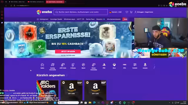 00:05:15Der Stream startet mit einem motivierenden Aufruf zum Start in den Tag. Der Fokus verschiebt sich schnell auf das Spiel 'Mafia 1', dessen Grafik und Story begeistern. Eine Ankündigung wird getätigt, dass es bei Eneba ein limitiertes Rabattangebot für die Mafia-Trilogie gibt. Der Streamer stellt den Rabattcode vor, der 8% auf den gesamten Warenkorb bis 150€ gewährt und bis zum 29. gültig ist.