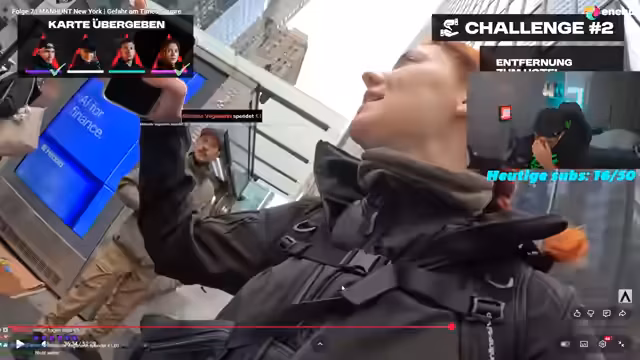 01:39:59Der Streamer beschreibt eine Jagd auf der Straße, bei der er jemanden sucht, der möglicherweise von ihm wegläuft. Er erwähnt einen Wettbewerb zwischen Jana und Hubert und kritisiert die Menschenmenge, die die Suche erschwert. Es geht darum, eine Karte von einem Hotel zu finden und an andere Personen weiterzugeben, während gleichzeitig die Jäger versuchen, sie abzufangen. Der Streamer betont die knappe Zeit und die Schwierigkeit des Events.