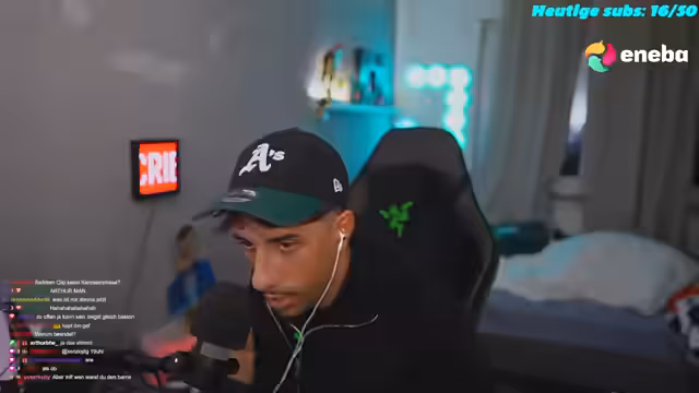 02:27:02Auf die Frage nach seinem Kontostand gibt der Streamer humorvoll zu, dass er bei Klarna 1300 Euro offen hat, die diesen Monat beglichen werden müssen. Er erklärt, dass diese Schulden durch verschiedene Ausgaben entstanden sind, darunter Essen, Deutsche Bahn-Tickets und Hotelbuchungen für geschäftliche Zwecke. Er betont, dass er 'hustlen' muss, um diese Beträge zu begleichen. Eine weitere skurrile Frage eines Zuschauers, die sich um die Häufigkeit seiner Flatulenzen und die Möglichkeit eines Porno-Drehs dreht, beantwortet der Streamer mit Humor und lehnt den Vorschlag eines Porno-Drehs ab, es sei denn, der Zuschauer macht zehn Subs.