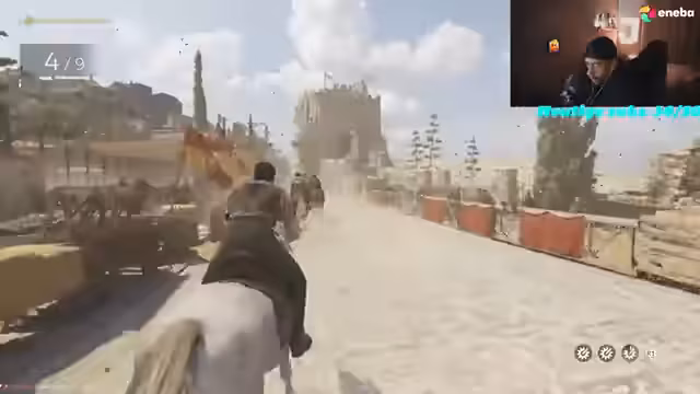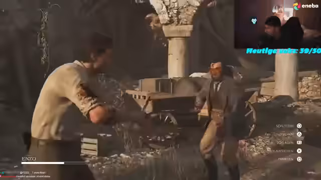 01:27:34Es wird über ein jährliches Pferderennen in San Celeste gesprochen, an dem Reiter aus jeder Stadt teilnehmen. Die Golletsolfe-Reiter gelten als Favoriten. Der Streamer weist auf einen Rabattcode für Eneba hin, der nur noch bis morgen gültig ist. Enzo und Luca machen sich auf den Weg zum Rennen. Luca erzählt von seiner 20-jährigen Loyalität zum Don und wie dieser ihm nach dem Tod seines Vaters geholfen hat. Die Landschaft wird bewundert, und es wird festgestellt, dass solche Ecken in Italien noch existieren könnten. Im Zelt des Dons herrscht schlechte Stimmung, da der vorgesehene Reiter, Arnaldo Di Matteo, betrunken ist und nicht reiten kann. Enzo bietet sich als Ersatz an und gewinnt das Rennen, was dem Don große Freude bereitet. Nach dem Rennen kommt es zu einer Begegnung mit Isabella, der Tochter des Dons, und einer Auseinandersetzung mit Männern, die Enzo angreifen. Enzo verteidigt sich und Isabella, was zu einer Warnung von Luca führt, sich von Isabella fernzuhalten, um Missverständnisse zu vermeiden.