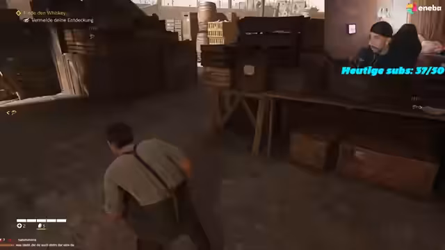 02:32:17Im Spielgeschehen kommt es zu einer wichtigen Wendung, als die Charaktere erfahren, dass Whisky von einem amerikanischen Schiff angekommen ist. Dieser Whisky wurde jedoch ins Zollager gebracht, bevor er abgeholt werden konnte. Die Aufgabe besteht darin, den Whisky zu stehlen, da keine Dokumente dafür vorliegen. Dies führt zu einer Schleichmission, bei der der Spieler 'Instinkt' nutzen und Gegner leise ausschalten muss. Es wird deutlich, dass das Spiel Elemente von Stealth und Action kombiniert, während die Charaktere versuchen, die gestohlenen Waren zurückzugewinnen. Die Mission erweist sich als herausfordernd, da der Spieler mehrmals scheitert, bevor er den Whisky erfolgreich sichern kann. Dies markiert den Beginn einer Reihe von gefährlichen Aufträgen für die Charaktere.