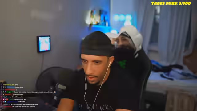 05:38:28Der Stream beginnt mit einer lockeren Begrüßung des Chats. Dabei kommt es zu einer verwirrten Diskussion über Abonnements, in der der Streamer und die Zuschauer vergeblich klären, ob und auf welchen Plattformen sie sich gegenseitig folgen. Chat-Nachrichten werden als chaotisch und geisteskrank beschrieben, wobei sich User privat verabreden sollen, was den Streamer zum Ausstieg aus der Chat-Dynamik veranlasst.