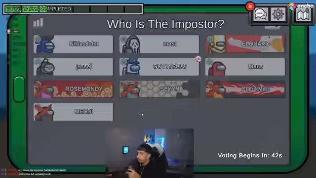 02:30:03Die Spieler nutzen verschiedene Tracker, um den Imposter aufzuspüren. Ein Spieler berichtet, dass er Medi den ganzen gescannt habe und schwört, dass dieser der Imposter sei. Allerdings ist die Situation unklar, da mehrere Spieler in verdächtigen Situationen gesehen werden. Ein Spieler beschreibt, wie er Medi in verschiedenen Bereichen des Schiffs verfolgt habe, um dessen Bewegungen zu analysieren. Dies zeigt die taktische Herangehensweise der Spieler, um Täuschungsmanöver aufzudecken und ihre eigene Position zu sichern.