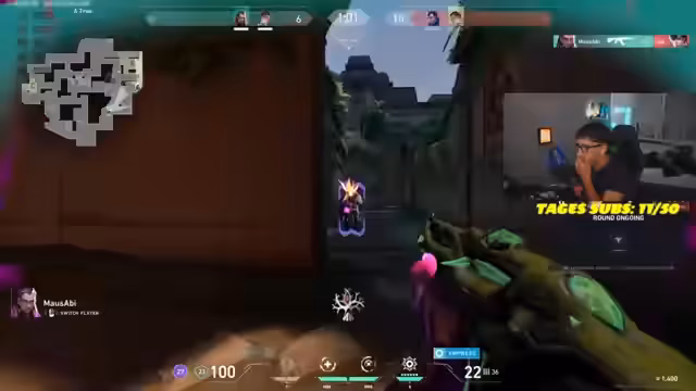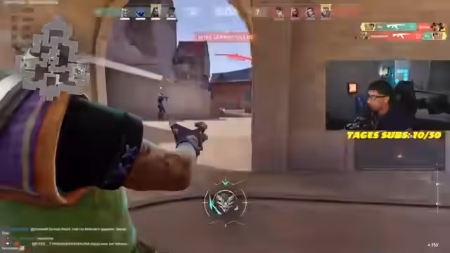 03:22:24Das Spiel auf der Map Ascent gestaltet sich als äußerst stressig und umkämpft. Der Streamer befindet sich in einem 1-gegen-3-Szenario, in dem er einen Gegner mit dem Messer tötet und daraufhin selbst von einem anderen eliminiert wird. Der Spielfluss ist unbeständig, mit ständigen Positionierungswechseln und taktischen Ratschlägen wie „wir müssen die ficken“ und „wir müssen nur auf Aim gehen“, was die Anspannung im Team widerspiegelt.