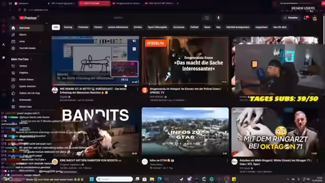 05:00:09Der Streamer kündigt an, in die Reaktion von Videos zu gehen, einschließlich 'Drogenrazie am Hotspot' und 'eine Nacht mit den Banditen in Bogota'. Er erwähnt auch seinen Plan, sich mit Essen zu versorgen und lädt die Zuschauer ein, mitzumachen. Dies deutet auf eine geplante, abwechslungsreiche weitere Stream-Session hin.