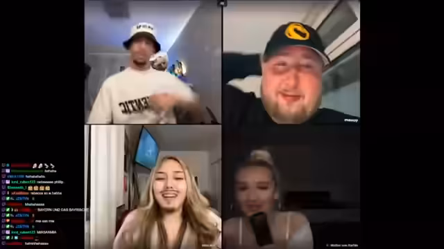 04:19:50Es wird über einen möglichen Besuch in Freiburg gesprochen, wobei die Entfernung von Würzburg und die Reisezeit per Zug diskutiert werden. Der Besuch soll jedoch auf einen späteren Zeitpunkt verschoben werden, da familiäre Verpflichtungen bestehen. Anschließend wird Rebecca in den Stream geholt, die sich über den Haarschnitt äußert und eine Massage fordert. Es kommt zu Spannungen mit Valentina, die Rebecca nicht mag, weil sie sie beleidigt hat. Rebecca wird aufgefordert, Englisch zu sprechen. Rebecca äußert sich positiv über das Outfit und vergleicht es humorvoll mit einem Opel Corsa-Fit und einem FBI-Agenten. Sie fragt nach dem Snapchat-Namen, was jedoch abgelehnt wird. Rebecca beteuert ihre Zuneigung und bezeichnet sich als Fan. Es wird ein Video aus den USA versprochen und über Make-up gesprochen.