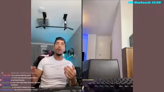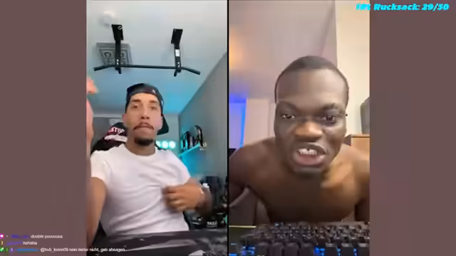 06:22:12Ein albernes Kopfstand-Duell zwischen Streamer und Chat-Mitgliedern findet statt, wobei es um Langlebigkeit bei der Kopfstandposition geht. Anschließend wechselt das Thema zu einem angekündigten Geschenktausch, bei dem der Streamer von jedem Besucher ein Geschenk erwartet und selbst kleine Überraschungen wie eine Sorgenbrille mitbringt. Die Stimmung bleibt humorvoll und lockert die Atmosphäre des Streams auf.