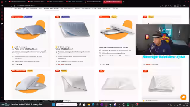 00:55:41Der Streamer stellt einen neuen Partner, Emma Matratzen, vor. Er berichtet ausführlich von seiner positiven Erfahrung mit deren Produkten, insbesondere einer Matratze, einem Topper und einem Kopfkissen. Er hebt die 100-tägige Testphase mit Geld-zurück-Garantie, die 10-jährige Garantie auf den Matratzenkern und den kostenlosen Liefer- und Aufbauservice hervor. Mit dem Code 'Yousef' erhalten Zuschauer einen zusätzlichen Rabatt.