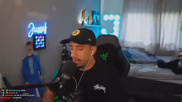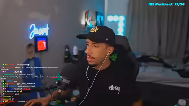 00:03:04Zu Beginn des Streams begrüßt Jussef seine Zuschauer und berichtet über persönliche Ereignisse. Er erwähnt, dass er sein Zimmer aufgeräumt hat und dabei eine Ratte gefunden hat, was er als spaßig bezeichnet. Er zeigt seinen neuen IRL-Rucksack, den er für die Gamescom erhalten hat, und berichtet über bevorstehende Streams, darunter ein gemeinsamer Stream mit Noah Artubulu. Darüber hinaus spricht er über seine Parfümvorlieben und testet IsoClear-Blaubeere-Kokos im Stream.