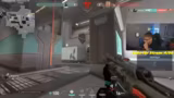 01:43:11Einzelne Spieler geraten in schwierige Situationen und müssen um ihr Überleben kämpfen, während das Team versucht, sich neu zu gruppieren. Der Streamer versucht, einen Mitspieler zu schützen, während er selbst in eine gefährliche Position manövriert. Das Team muss nun koordiniert vorgehen, um einen Angriff auf Punkt 'B' zu starten. Es gibt Diskussionen über den Einsatz von Fähigkeiten wie Flash-Granaten und Smokes, um den Gegner zu blenden und taktische Vorteile zu erzielen.