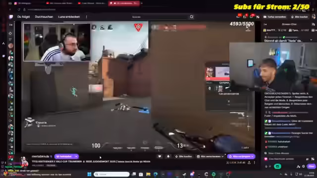 01:36:55Das Spiel beginnt mit einem intensiven Start, bei dem der Streamer und sein Team versuchen, strategisch Positionen zu halten und den Gegner auszutricksen. Es gibt ein Chaos in der Markt-Area, wo mehrere Teammitglieder sterben oder flüchten müssen. Ein Fokus liegt darauf, die Bombe sicherzulegen und sich dabei gegnerischen Angriffen zu entziehen. Der Streamer diskutiert über die Positionierung eines Snipers, der ein ständiges Problem darstellt, und plant, mit seinem Team umzudrehen, um den Gegner in eine Falle zu locken.