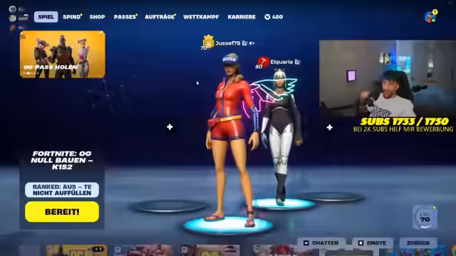 07:52:19Der Streamer spricht über eine persönliche Herausforderung im Spiel Fortnite. Er ist Platinum 3 und möchte noch 100 Punkte erreichen, was etwa fünf Stunden的游戏zeit und fünf Gegner bedeutet. Ein Begleiter zweifelt stark an seiner Fähigkeit, dies im letzten Stream des Tages zu schaffen, und warnt ihn vor den Konsequenzen wie einer möglichen Internetunterbrechung. Der Streamer zeigt sich jedoch realistisch und gibt an, die Challenge sei machbar, auch wenn es der allerletzte Stream sei und er danach offline geht.