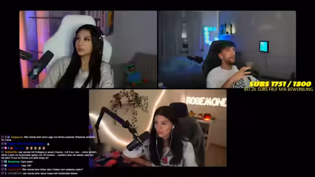 08:42:48Es wird über verschiedene Formate für den Stream diskutiert, darunter "Frage Go", das jedoch schon zu oft genutzt wurde. Aquaria wird kritisiert, weil sie Rose nicht im Titel ihres Streams erwähnt hat. Es wird gefordert, dass Zuschauer zehn Subs an Rose geben sollen, anstatt fünf an Aquaria. Rose betont, dass sie immer gerne teilt. Es wird überlegt, ein neues Format zu entwickeln, bei dem Discord-Kämmern genutzt werden, um Fragen zu beantworten. Die Zuschauer sollen mit ihrem Handy VDR-Antworten geben. Es wird diskutiert, ob Begegnungen im Traum real sind und ob die Seele einen wirklich besucht. Die Streamer sprechen darüber, wen sie im Unterbewusstsein haben und warum. Rose erinnert sich daran, dass sie von Mois geträumt hat, was sie an eine andere Person erinnert. Es wird erwähnt, dass man für Rose und Alquaken bei der Wahl zum Streamer des Jahres abstimmen kann. Ein Zuschauer wird für seine Gifted Subs gedankt. Es wird über ein Zitat von Daniel Negroni gesprochen. Rose erzählt, dass sie zur Entbannungszentrale für ihren Chat geworden ist. Sie berichtet von einem Pack-Opening, bei dem sie als Erste gezogen wurde und einen Zuschauerrekord von 12.600 Leuten hatte. Monte hat sie verteidigt. Es wird überlegt, ein Pack-Opening für Pokémon zu machen, aber die hohen Kosten werden diskutiert. Anaya hat ein Pack für 8000 Euro gekauft. Es wird betont, dass dies für viele Menschen viel Geld ist. Die Streamer sprechen darüber, dass man solche Ausgaben steuerlich absetzen kann. Es wird entschieden, ein Spiel zu spielen, bei dem die Zuschauer zwischen zwei Optionen wählen müssen. Die Streamer sollen ein schwarzes Bild auf Instagram posten und die Zuschauer können sie adden. Youssef macht Storys auf Instagram. Es wird ein Intro für das YouTube-Video gemacht. Rose wird damit verglichen, dass sie von Frankfurt ist und Leute anspricht, ob sie einen Euro haben.