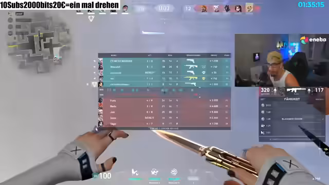 02:57:08Die letzte Phase des Streams besteht aus einem Live-Spiel von Valorant. Der Streamer und sein Team erleben eine Reihe von Rückschläge und strategischen Fehlern. Während des Spiels gibt es intensive Diskussionen über Waffenwahl, Teamkommunikation und das Erkennen von Stream-Snipern. Trotz der Misserfolge bleibt die Stimmung im Team durch humorvolle und selbstironische Kommentare erhalten, während sie versuchen, aus ihren Fehlern zu lernen und das nächste Match zu gewinnen.