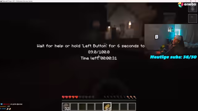 02:09:15Während des Spiels treten erhebliche technische Probleme auf, die den Stream beeinträchtigen. Der Streamer hat einen Black Screen, wenn er in den Vollbildmodus wechselt, was auf ein Problem mit OBS oder Minecraft hindeutet. Die Koordination im Team ist schwierig, da sich die Spieler in der Welt verlieren, Gegenstände teilen müssen und die Steuerung der Waffen und Munition, insbesondere das Nachladen, für einige Herausforderungen bereitet.