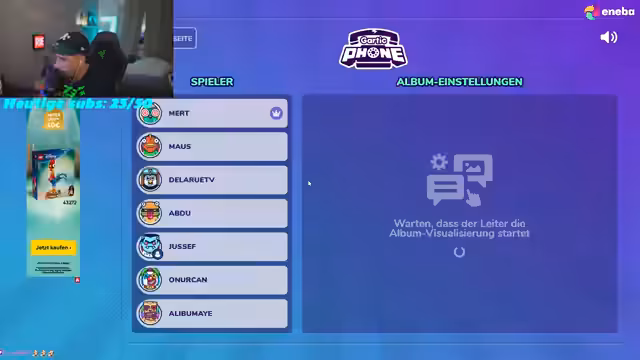 02:29:40Die Gruppe entscheidet sich für das Spiel 'Garlic Phone', bei dem ein Spieler einen Satz schreibt, den ein anderer malen muss, woraus sich dann eine Kette von Zeichnungen und Beschreibungen entwickelt. Die Spieler werden angewiesen, einen Link zu öffnen und F11 zu drücken, um den Link auszublenden und die Privatsphäre zu wahren. Es treten jedoch technische Probleme auf, da ein Spieler beim Drücken von F11 Musik startet. Die Anweisungen zur Teilnahme und zum Umgang mit den technischen Schwierigkeiten werden wiederholt, um sicherzustellen, dass alle Spieler erfolgreich am Spiel teilnehmen können. Die Vorfreude auf das kreative und humorvolle Spiel ist groß, auch wenn die anfänglichen Hürden für einige Spieler eine Herausforderung darstellen. Die Interaktion zwischen den Spielern und die gegenseitige Unterstützung bei der Lösung der Probleme tragen zur lockeren Atmosphäre bei.
