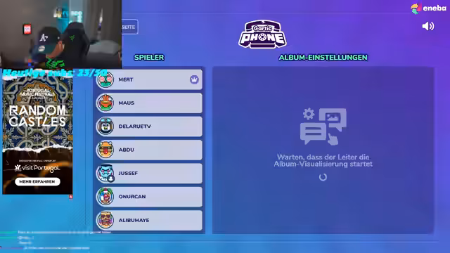02:30:10Der Stream startet das ausgewählte Spiel, bei dem jeder Teilnehmer einen Satz eingibt, der von einem anderen als Bild umgesetzt werden muss. Hierbei kommt es jedoch zu erheblichen technischen Schwierigkeiten, die das Spiel verzögern und frustrieren. Die Teilnehmer müssen ständig den Full-Modus an- und ausschalten, um den Bildschirm freizugeben, und kämpfen mit der Bedienung, insbesondere mit der Drückung von F11, um Links auf dem Bildschirm auszublenden, was bei einigen nicht korrekt funktioniert und zu Verwirrung führt.