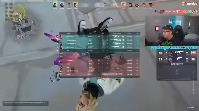 04:57:49Die letzte Phase des Valorant-Spiels ist von intensiver Konzentration und anhaltender Frustration geprägt. Die Spieler versuchen, ihre letzten Kräfte zu mobilisieren und die Runde doch noch zu gewinnen, aber die Gegner scheinen überlegen zu sein. Es kommt zu weiteren Fehlern und unglücklichen Situationen, die die Stimmung weiter trüben. Die Diskussion über die mangelnde Koordination und die individuellen Fehler der Spieler setzt sich fort, wobei einige ihren Unmut offen äußern. Trotz der Niederlagen und der steigenden Frustration versuchen die Spieler, sich gegenseitig zu ermutigen und nach vorne zu blicken. Es wird über die Möglichkeit eines Comebacks gesprochen, aber die Realität der schlechten Ergebnisse ist schwer zu ignorieren. Die Runde endet mit einer Mischung aus Enttäuschung und dem Wunsch, das Spiel zu beenden und sich anderen Aktivitäten zuzuwenden.