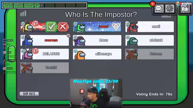 00:45:19Die späten Runden sind von ähnlichen Mustern geprägt. Der Streamer versucht weiterhin, durch Beobachtungen und Logik den Imposter zu identifizieren, darunter Merdan und Abdu, während die Gruppe oft gegenteilige Entscheidungen trifft. Es kommt zu wiederholten Auseinandersetzungen über Bewegungen, Türen, die zu waren, und wer wann wo war. Vertrauensbrüche und gegenseitige Beschuldigungen führen dazu, dass sich der Streamer oft isoliert fühlt und die Spielrunden als äußerst anstrengend und frustrierend beschreibt. Er wirft anderen Spielern vor, nicht zuzuhören und Entscheidungen aus Emotionen zu treffen.