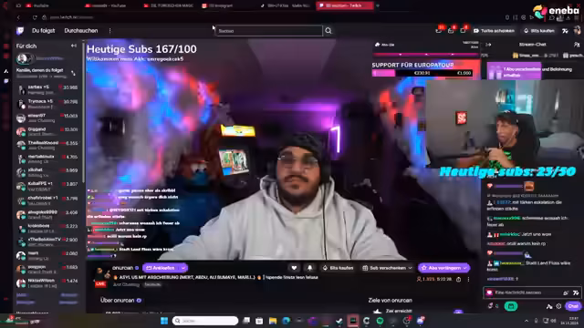 02:22:46Die Spieler diskutieren intensiv über die Spielstrategien und wer in den Kameras gesehen wurde. Es kommt zu Vorwürfen und Missverständnissen, insbesondere zwischen Ali und anderen Spielern. Ein Spieler, Merz, wird fälschlicherweise beschuldigt, obwohl er seine Unschuld beteuert. Die Runde ist von Verwirrung und gegenseitigem Misstrauen geprägt, da die Spieler versuchen, den Impostor zu identifizieren. Die Situation eskaliert, als ein Spieler genervt feststellt, dass er die ganze Zeit mit Rohat zusammen war und dieser unschuldig sei. Die Frustration über die Fehlentscheidungen und die daraus resultierenden Niederlagen ist deutlich spürbar, und einige Spieler drohen sogar damit, den Stream zu verlassen, wenn sich die Situation nicht bessert. Die Dynamik des Spiels führt zu hitzigen Debatten und humorvollen, aber auch ernsten Anschuldigungen unter den Teilnehmern.
