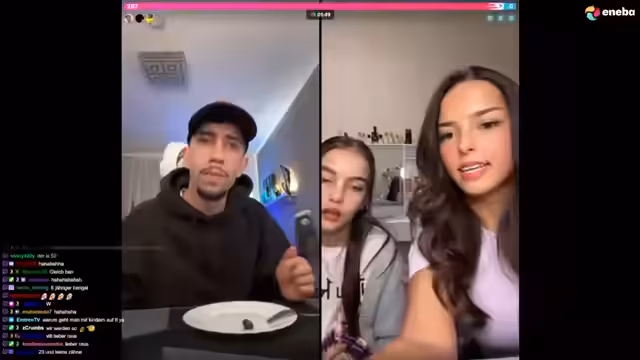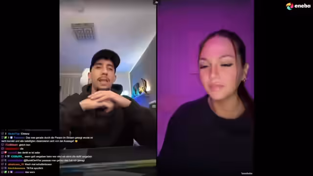 05:37:24Ebi erzählt, dass sie Studentin ist und Politik, Soziologie und Koreanisch studiert. Der Streamer erzählt, dass er sein Studium abgebrochen hat und jetzt einen eigenen E-Commerce mit WhatsApp-Gruppen betreibt. Er verdient damit etwa 300 Dollar im Monat. Ebi fragt, was er in seinem Bett macht und er antwortet, dass er chillt. Sie fragt, wem er den Kiefer gebrochen hat und der Streamer antwortet, dass ein Kollege zusammengeschlagen wurde. Ebi bedankt sich bei Fabi für ein Universum-Cut. Sie fragt, wer Panne ist und der Streamer antwortet, dass er ein Freund ist. Ebi fragt, was er heute gemacht hat und der Streamer antwortet, dass er einkaufen war und gelernt hat. Der Streamer erzählt, dass er bis 14 Uhr wach war und ein Placement verpennt hat. Er fragt Ebi nach Optionen, was er machen kann und sie schlägt vor, dass er schlafen geht, sich an den PC setzt, einen Film guckt, auf TikTok live geht oder auf Twitch live geht. Sie empfiehlt ihm einen Chicken-Laden in Düsseldorf namens BBC. Sie fragt, ob er schon mal verliebt war und ob sein Herz gebrochen wurde. Der Streamer antwortet, dass er noch nie verliebt war, aber ein Kind hat. Ebi fragt nach seiner letzten Beziehung und wie lange sie gedauert hat. Der Streamer antwortet, dass sie fünf, sechs Monate gedauert hat und dass es seine erste und einzige war. Ebi fragt, wie viele Beziehungen er schon hatte und der Streamer antwortet, dass er zwei offizielle hatte. Ebi fragt, ob er schon Zukunftspläne macht und der Streamer antwortet, dass er in zwei, drei Jahren heiraten möchte. Sie fragt, in welchem Semester er ist und er antwortet, dass er im sechsten ist. Sie fragt nach seinen Zukunftsplänen und er antwortet, dass er in sieben Jahren heiraten möchte. Ebi sagt, dass es am besten wäre, mit 25 seriös zu sein. Der Streamer sagt, dass es viel zu früh ist und dass man mit 25 noch nicht weiß, wie das Leben läuft. Ebi sagt, dass man mit 30 heiraten sollte oder sehr früh, mit 18, 19. Der Streamer sagt, dass man so schnell wie möglich heiraten sollte. Ebi fragt, wann seine Mutter geheiratet hat und der Streamer antwortet, dass sie mit 21 geheiratet hat und jetzt getrennt ist.