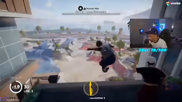 01:57:54Während des Spiels 'Skate' kündigt der Streamer einen exklusiven Rabattcode für den Store Eneba an. Er gibt den Code 'FC26eShare' bekannt, dem Zuschauer 7% auf den gesamten Einkauf bis zu 150 Euro auf Spiele, DLCs, Karten und mehr gewährt. Er erwähnt, dass es sich um den letzten Code dieses Monats handelt und animiert die Chat-User, diesen zu nutzen. Gleichzeitig zeigt er sich motiviert und ist hochgradig auf das Spiel fokussiert. Er experimentiert mit Spawn-Punkten und versucht, neue, schwierige Tricks zu meistern, was zu frustrierenden, aber auch erfolgreichen Momenten führt. Die Stimmung ist entspannt, der Streamer ist geladen und voller Tatendrang, die Community interagiert intensiv mit den Bemühungen im Spiel.