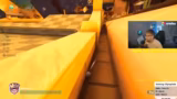 03:12:37Das dritte Spiel ist ein Jump'n'Run Parcours. Die Spieler müssen einen Kurs mit Doppelsprüngen und Hindernissen bewältigen und gleichzeitig versuchen, andere Spieler abzulenken oder aus dem Spiel zu werfen. Die Kommentare drehen sich um die eigenen Leistungen und die anderer, mit viel Spott und Stolz über gute oder schlechte Leistungen. Es herrscht ein chaotischer, aber wettbewerbsorientierter Wettstreit.