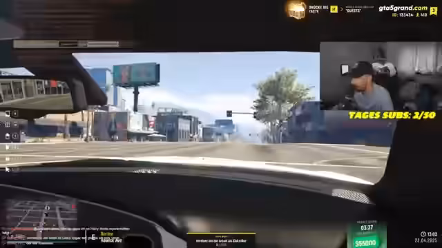 01:45:32Nach einer Trainingseinheit im Spiel, in der der Streamer seine Fähigkeiten verbessern will, interagiert er mit der Spielwelt. Er bemerkt, dass viele Spieler aktiv sind, da Ferien sind, und sucht die Konfrontation mit einer anderen Familie, um sich zu bewerben. Diese Interaktion ist aggressiv und von Provokationen geprägt. Zuletzt versucht er, ein Auto zu mieten, ist aber überfordert mit den Bedingungen, wie der Mietzeit und dem benötigten Bargeld.