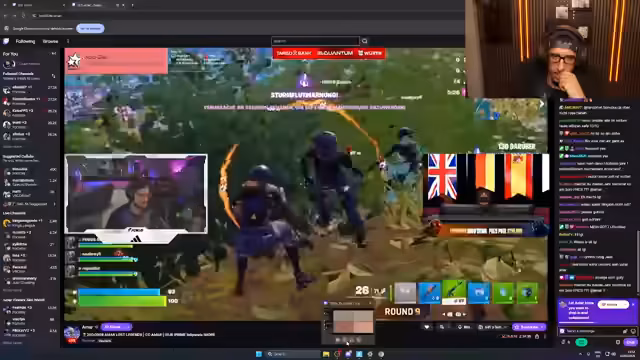 02:50:52Der Stream parallelisiert sein FORTNITE-Spiel mit einem intensiven Anschauen eines Fußballspiels. Er kommentiert das Geschehen leidenschaftlich und emsig, ist von der Spannung des Spiels völlig mitgerissen und vergleicht spektakuläre Szenen mit dem Fußball. Die beiden Welten – das actionreiche Battle Royale und das emotionale Fußballmatch – vermischen sich im Stream zu einer aufregenden Doppel-Unterhaltung.