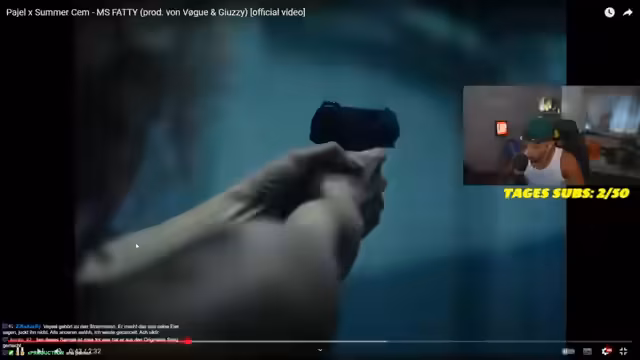00:30:22Ein großer Teil des Streams besteht aus dem Anschauen und Kommentieren von Musikvideos. Der Streamer reagiert intensiv auf neue Lieder von Rappern wie Ayman, Chave und Jauz, die er als sehr stark und einzigartig bezeichnet. Analysiert werden Textzeilen und der Stil der Künstler. Auch ältere Songs von Aleko und Uwe Murder werden im Rahmen von Reaction-Clips gezeigt und positiv bewertet.