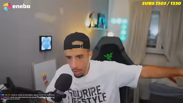 01:40:11Zu Streambeginn wird das Thema Regen aufgegriffen und ein hypothetisches Szenario durchgespielt, wie man sich gemeinsam unter einem Regenschirm verstecken würde. Daraufhin wechselt das Gespräch zu persönlichen Dingen wie dem Essen des Streamers und seines Gegenübers, der Sushi und Curry gegessen hat, während der Streamer selbst gerade Nudeln zu sich genommen hat. Das Gespräch ist von einer lockeren und persönlichen Atmosphäre geprägt, in der sich beide über das gegenseitige Essen und kleine Begebenheiten unterhalten.