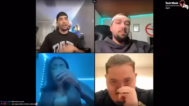 04:00:05Es wird eine Tanz-Challenge initiiert. 'Mutter von Barbie' soll tanzen, während Cody ein Lied von 'AK aus der Kontrolle' rappt. Der Versuch scheitert jedoch, da der Text falsch rezitiert wird und die Stimmung ins Lächerliche kippt. Anschließend beginnt eine Diskussion über die nationale Herkunft der Teilnehmer. 'Mutter von Barbie' kommt aus Montenegro und spricht eine Mischung aus Romani und Türkisch, während Cody halb Albaner und halb Rumäne ist. Der kreative Austausch zeigt die hohe Interaktivität und den Humor im Stream.