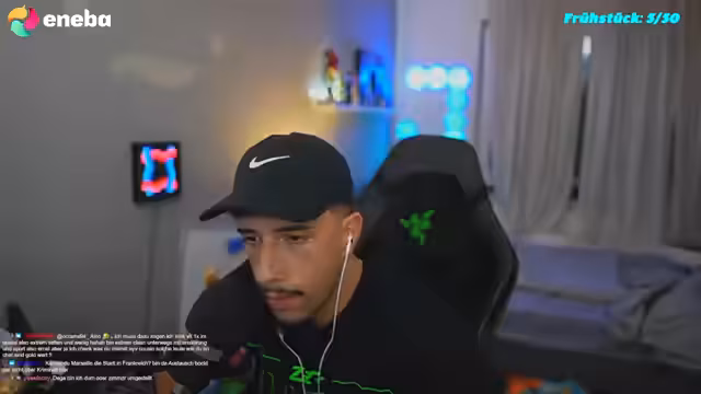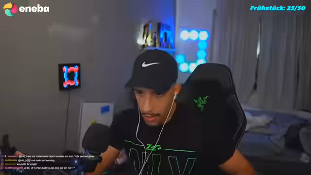 00:19:29Der Streamer kündigt an, einen Vlog aufzunehmen, der jedoch aufgrund der Vorbereitungen eines Kollegen für einen Kampf in Karlsruhe verschoben werden muss. Er verspricht, den Vlog später mit dem Chat anzusehen und beschreibt die Zusammenarbeit als lustigen Inhalt. Daraufhin diskutiert er seine Beleuchtungseinstellungen und überlegt, die Lampe an- oder auszulassen, bevor er auf seine Reise nach Frankreich zu sprechen kommt. Dort hatte er einen Grillteller für 10 Euro gegessen und teilt seine Freude, Schnäppchen mit den Zuschauern zu teilen. Er erwähnt zudem eine Kaufentscheidung für eine Regenjacke, die er in schwarz bevorzugt, und wechselt dann zu einem Gespräch über Einsteigen in Zufallschats.
