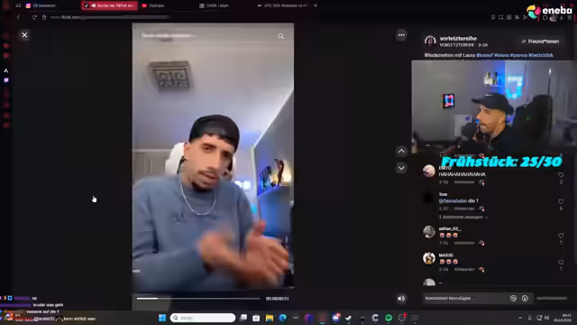 00:33:03Der Streamer erklärt die Aufteilung seiner Energie während des Streams: einen Teil für Twitch-Talk, einen für Skateboarding, einen für Reaction-Videos und einen für UFC. Er betont, dass nun alles eingeplant sei und fordert den Chat auf, zu tippen, liken und zu liken. Daraufhin wechselt er zu TikTok und teilt mit, dass er eine kostenpflichtige SIM-Karte in Betracht zieht, um nachts mit Zuschauern telefonieren zu können. Es folgt ein humorvoller Austausch über Beziehungen und Brüche, während er den Chat auffordert, sich an dieser Stelle zu beteiligen.