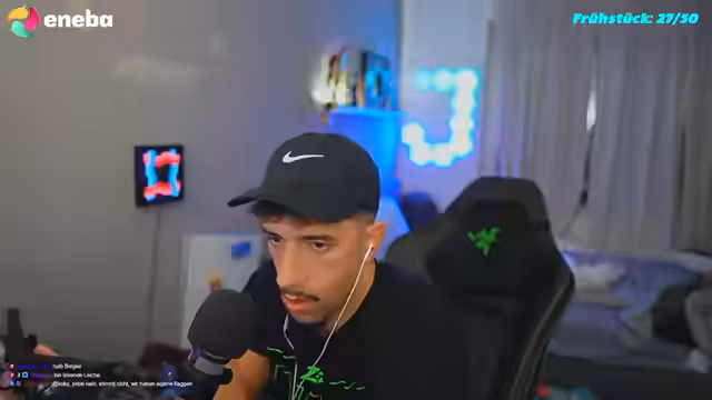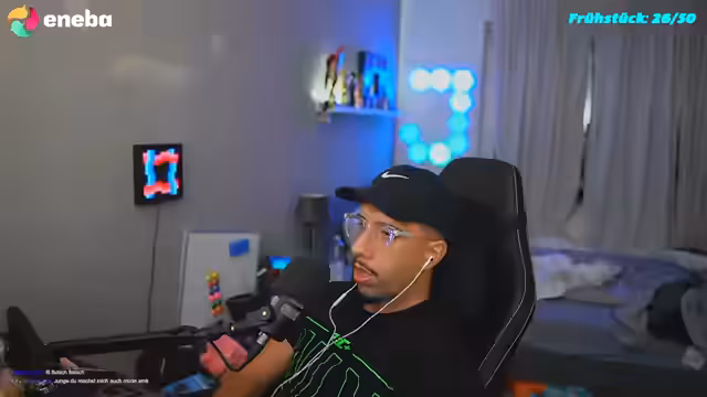 00:28:33Die Unterhaltung dreht sich um bevorstehende MMA-Kämpfe, insbesondere einen von Abus, dessen Sieg der Streamer prognostiziert. Er nutzt eine App für zufällige Video-Chats, die ihm ermöglicht, mit völlig fremden Menschen aus aller Welt zu sprechen. Bei einem dieser Zufallsgespräche erfährt er von einem Mann aus Frankfurt, der behauptet, von seiner Freundin betrogen worden zu sein, und bittet um Hilfe. Diese unerwartete Konfrontation wird emotional intensiv. Des Weiteren gibt es wiederholt technische Schwierigkeiten mit dem Mikrofon und den Videoübertragungen.