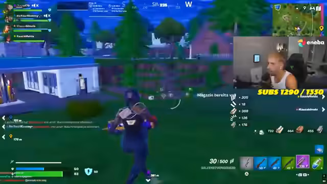 05:22:13Auf Wunsch des Chat wird das Spiel zu Fortnite gewechselt. Der Streamer und seine Mitspielerin, Melda, landen in Salty Springs und kämpfen gegen Gegner. Es kommt zu intensiven Feuergefechten, bei denen der Streamer mehrere Kills erzielt und sich bei Teamkollegen supportet. Das Gameplay wird als actionreich und spannend beschrieben, und der Streamer hebt hervor, wie viel Bock es macht, wieder zu zocken.