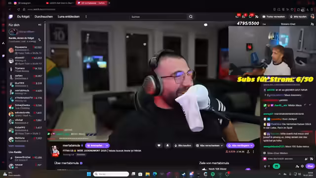 05:59:08Nach dem Spiel entbrennt eine hitzige Diskussion im Chat, bei der der Streamer seine Frustration über das verlorene Spiel äußert. Es kommt zu Provokationen und Beschimpfungen gegenüber anderen Spielern. Parallel dazu wird der Streamer auf das aktuelle Musikvideo von Zahide aufmerksam und startet eine lebhafte Diskussion über den Erfolg und den Einfluss junger Influencer im Social-Media-Bereich, die viel Aufmerksamkeit und Geld generieren.