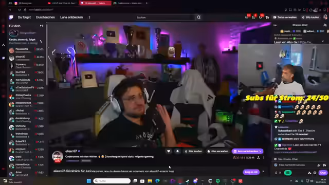 06:24:03Der Streamer interagiert stark mit der Community und beantwortet Fragen, aber auch stellt hypothetische Szenarien vor, wie zum Beispiel eine 'hausparty mit Auto im Pool'. Anschließend schaut er sich ein Musikvideo an und diskutiert darüber. Es kommt zu technischen Problemen bei der Übertragung, die aber schnell gelöst werden. Des Weiteren beginnt eine Session, bei der er versucht, andere Streamer in seinen eigenen Discord-Server einzuladen, um sie zusammenzubringen.
