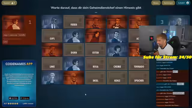 03:26:42Der Streamer geht detailliert auf die Regeln und den Ablauf des bevorstehenden Codenames-Spiels ein. Er erklärt, dass in Teams zu je zwei Personen gespielt wird und jede Partie um fünf Subs geht. Die Teams werden festgelegt: Das eine Team besteht aus dem Streamer, Danny, Eli, Mert und Josef, das andere aus Rose, Sophia, Zane und Maus. Er betont die Wichtigkeit der Fairness warnt vor Schummeleien und ruft alle Spieler auf, einzeln auf Deutsch zu kommunizieren, um das Spiel für alle verständlich und fair zu gestalten.