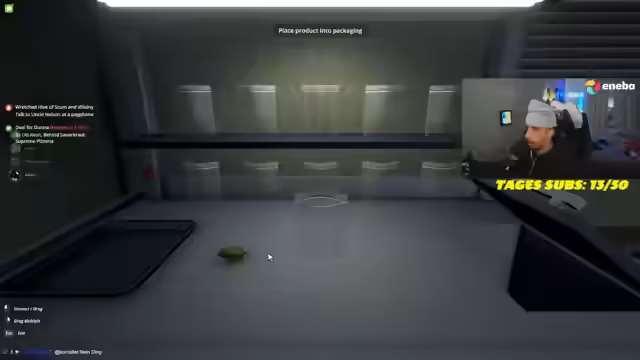 02:28:42Die Mission, Fett Urkel herzustellen, ist erfolgreich abgeschlossen. Der Streamer hat das Zeug aus einem Postfach geholt, das bei der Tacoscheibe war. Er ist erleichtert, dass es geklappt hat. Der nächste Schritt ist, 5.000 Euro zu sparen, um eine neue Crypt zu kaufen, die mehr Produktion ermöglicht. Der Streamer ist motiviert und will mehr verkaufen. Er plant, Benji mit neuen Dings zu beliefern, um den Umsatz zu steigern. Er ist zuversichtlich, dass er das Ziel erreichen wird.
