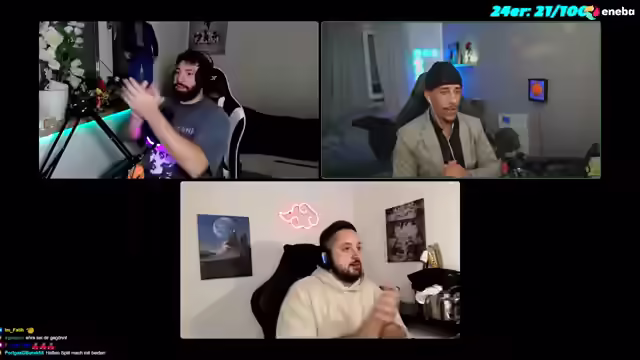01:39:28Mehrere Streamer teilen ihre Erfahrungen und Ansichten über das Streamen. Mayla spricht über ihre zweijährige Streaming-Erfahrung mit Höhen und Tiefen und betont, wie wichtig es ist, auch an Tagen durchzuziehen, an denen man keine Lust hat. Sie rät davon ab, sich zu sehr auf teures Equipment zu konzentrieren und stattdessen den Spaß in den Vordergrund zu stellen. Younes, der seit fünf bis sechs Monaten streamt, sieht es pragmatisch: Da er sowieso zockt, kann er auch live gehen und schauen, was passiert. Gazi, der erst seit drei Monaten streamt und sich einen Computer gekauft hat, erzählt humorvoll von den Trollen in seinem Chat. Sosa, der bereits vor drei Jahren mit dem Streamen begann, aber unregelmäßig war, streamt seit Anfang des Jahres wieder regelmäßig. Sandro berichtet von technischen Problemen mit seinem Laptop und wie er durch Arbeit und Hustle einen neuen PC finanzierte. Er betont die Wichtigkeit, das Abitur nicht zu vernachlässigen. Ein weiterer Streamer, der seit einem Jahr streamt, erzählt von seinen TikTok-Erfahrungen und wie er zum Streamen kam. Die Streamer tauschen sich auch über ihre Herkunftsländer aus und diskutieren kulturelle Unterschiede.