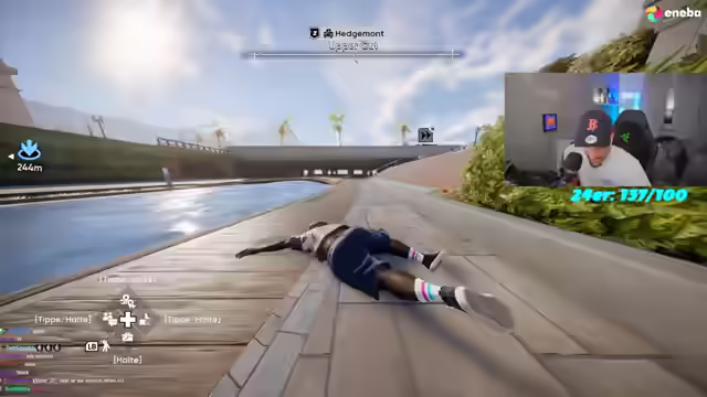 06:15:42Der Streamer sucht nach einem bestimmten Spot und fragt die Zuschauer um Hilfe. Er findet den Spot schließlich und erklärt, wie man dorthin gelangt. Er bedankt sich bei einem Zuschauer namens Bro Nemless für 20 geschenkte Subs und bei Valorant für weitere sechs Subs. Es wird über ein Lied gesprochen, das im Hintergrund läuft. Der Streamer versucht, einen bestimmten Skate-Trick zu schaffen, scheitert aber immer wieder. Er erklärt, dass er genau auf der Kante landen muss, um den Trick auszuführen. Er äußert den Wunsch, den Trick zu beherrschen. Es wird über verschiedene Jumps und Clips gesprochen. Der Streamer erwähnt, dass die Clips aufgrund von Netz-Sensierung und Musik nicht funktionieren. Er kündigt an, sich später selbst darum zu kümmern. Abschließend wird über einen Launch-Glitch und eine Rampe gesprochen, die verwendet wird, um nach oben zu gelangen. Der Streamer versucht, mit dem Skateboard abzurollen und zu fliegen, scheitert aber zunächst. Der Stream wird beendet.