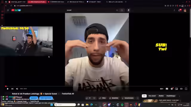 10:51:07Es wird ein neuer Gesprächspartner hinzugefügt, der nach dem Ursprungsort gefragt wird und scherzhaft ein fiktives Land namens "Yusef Schlachtsemer" nennt, bevor er Dortmund als seinen tatsächlichen Herkunftsort angibt. Es stellt sich heraus, dass der Gesprächspartner Fast-Food-Content auf YouTube macht und eine Vorliebe für Cheeseburger hat. Sie sprechen über traditionelle Gerichte und der YouTuber zeigt seinen Körper, woraufhin der Streamer seine Stärke lobt. Der Streamer erwähnt, dass er die Leute in eine WhatsApp-Gruppe hinzugefügt hat. Es folgt ein Gespräch mit einer Person, die Deutsch spricht und sich über den Akzent des Streamers lustig macht. Der Streamer muss erneut auf die Toilette und bittet jemanden, den Chat zu unterhalten. Eine Frau namens Zara Musch übernimmt kurzzeitig die Unterhaltung und wünscht allen Muslimen einen erfolgreichen Ramadan. Sie erzählt von ihren Erfahrungen auf TikTok und ihrem Interesse an Lip-Syncing-Videos. Zara berichtet, dass Yusuf 800 Zuschauer hat und sie gönnt es ihm.
