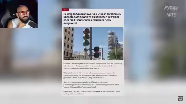00:26:11Der Streamer analysiert den aktuellen Stromausfall in Europa, der als Blackout bezeichnet wird. Er zeigt Grafiken des spanischen Stromnetzes auf, bei denen man einen plötzlichen und kompletten K sees Sturz der Stromversorgung um 12:30 Uhr sieht. Es werden die möglichen Ursachen wie eine Überlastung des Netzes, ein Brand in Frankreich oder eine Sonneneruption diskutiert. Die erheblichen Auswirkungen wie der Stillstand des Verkehrs, des öffentlichen Nahverkehrs und die Panik in der Bevölkerung werden detailliert beschrieben.