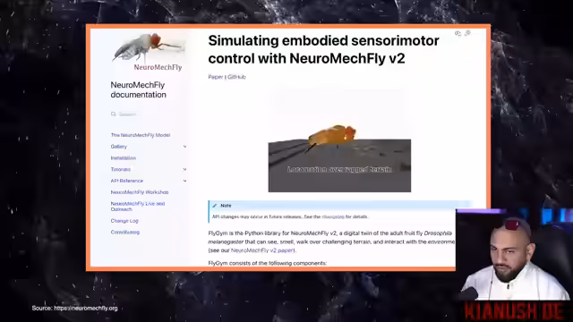 00:33:34Der Streamer stellt ein Experiment von Ion Systems vor, bei dem das komplette Gehirn einer Fruchtfliege digital nachgebildet und in eine virtuelle Umgebung eingesetzt wurde. Oh dass eine programmiert wurde, zeigte die simulierte Fliege komplexe Verhaltensweisen. Dies wirft grundlegende Fragen zur KI-Forschung auf und deutet auf einen dritten Weg neben Training mit Daten und festen Regeln hin, nämlich der reinen Architektur des Netzwerks.