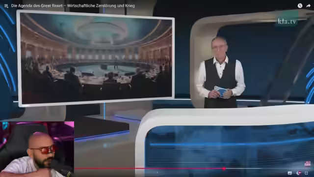 01:40:53Der Streamer beklagt einen wirtschaftlichen Kollaps Deutschlands, den er einer hochgradfreimauristischen Finanzmafia zuschreibt. Diese Machtgruppe soll die Politik, Gewerkschaften und Medien unterwandern, um eine neue Weltordnung mit einer Eine-Welt-Regierung zu errichten. Er nennt konkrete Personen wie Scholz und Merkel sowie Organisationen wie den Atlantikbrück und das WEF als Akteure dieses Plans.