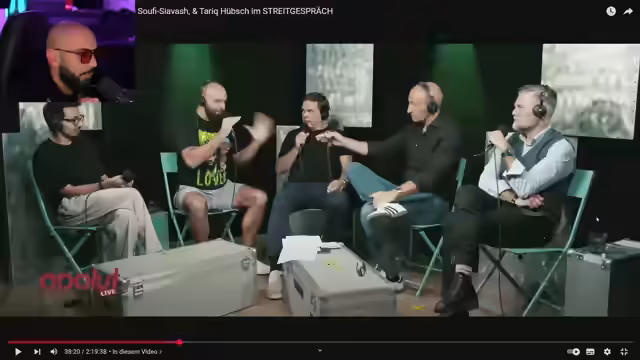 01:32:28Der Streamer moderiert eine Live-Diskussion mit mehreren Gästen über den Post von Paul Brandenburg, der "Kopftuchpanzer, Massenvernichtungswaffe der Umvolkung" betitelt war. Brandenburg verteidigt seinen Beitrag und sieht darin eine Kritik an einem menschenverachtenden Problem, nicht am Islam selbst. Musiker Belasch kritisiert den Post als rassistisch und findet es unverantwortlich, eine Bevölkerungsgruppe für die Politik verantwortlich zu machen. Der Imam Tarek Hübsch betont, dass Kriminalität ein kulturelles, kein religiöses Problem ist und warnt vor pauschalisierenden Aussagen. Die Runde will trotz kontroverser Meinungen einen offenen Diskurs führen.