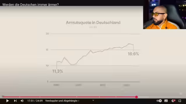 01:10:38Es wird der Unterschied zwischen Reichtum und Armut verdeutlicht. Charlotte gehört zum reichsten Prozent in Deutschland und hat ein Vermögen von mindestens 1,3 Millionen Euro, das klug angelegt ist und wächst. Karl hingegen hat ein monatliches Nettoeinkommen von 1023 Euro und liegt damit unter der Armutsgrenze. Er kann sich viele grundlegende Dinge nicht leisten. Es wird betont, dass Menschen in Armut oft sozial ausgegrenzt sind und seltener wählen gehen. Die Armutsquote ist über die Jahrzehnte immer weiter angestiegen. Es wird diskutiert, ab wann man als arm gilt. Der Streamer unterscheidet zwischen Armut und dem Leben am Existenzminimum. Er betont, dass man in Deutschland auch als arm immer noch ein Dach über dem Kopf und etwas zu essen hat. Es wird erwähnt, dass der Streamer selbst lange Zeit am Existenzminimum gelebt hat. Es wird darüber gesprochen, wie wichtig es ist, dass die nächste Generation es besser hat und dass man seinen Kindern etwas vererben möchte.